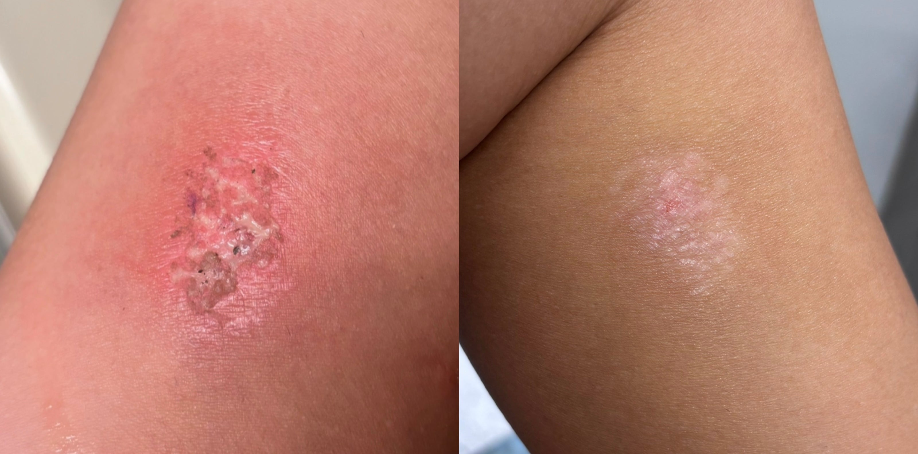 This customer gets poison ivy very easily. She ended up getting a chemical burn by rubbing her poison ivy with bleach which made her skin raw. She used the Tallow Barrier Balm and saw these results within a week of using!
