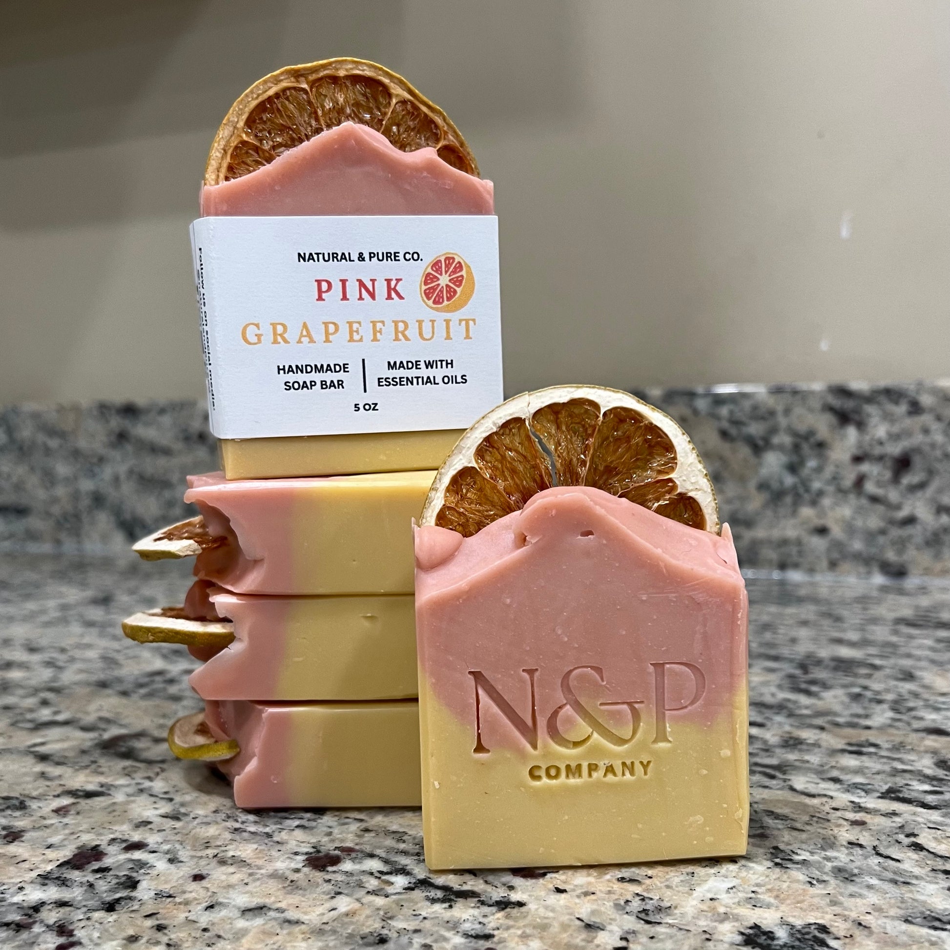 Grass-Fed Tallow, Coconut Oil, Castor Oil, Olive Oil, Aqua, Sodium Hydroxide (turns the liquid into a hard bar of soap), Brazilian Yellow Clay, French Pink Clay, Pink Grapefruit Essential Oil