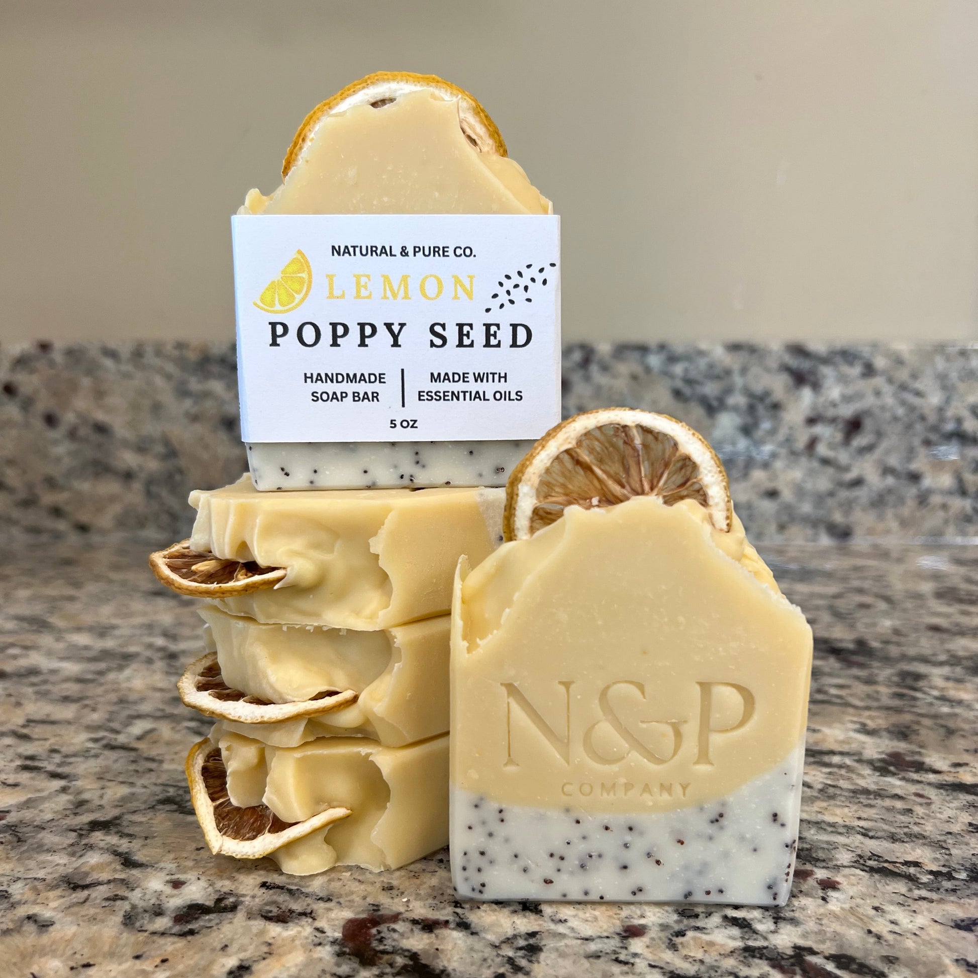 Grass-Fed Tallow, Coconut Oil, Castor Oil, Olive Oil, Aqua, Sodium Hydroxide (turns the liquid into a hard bar of soap), Brazilian Yellow Clay, Kaolin Clay, Lemon Essential Oil, Poppy Seeds